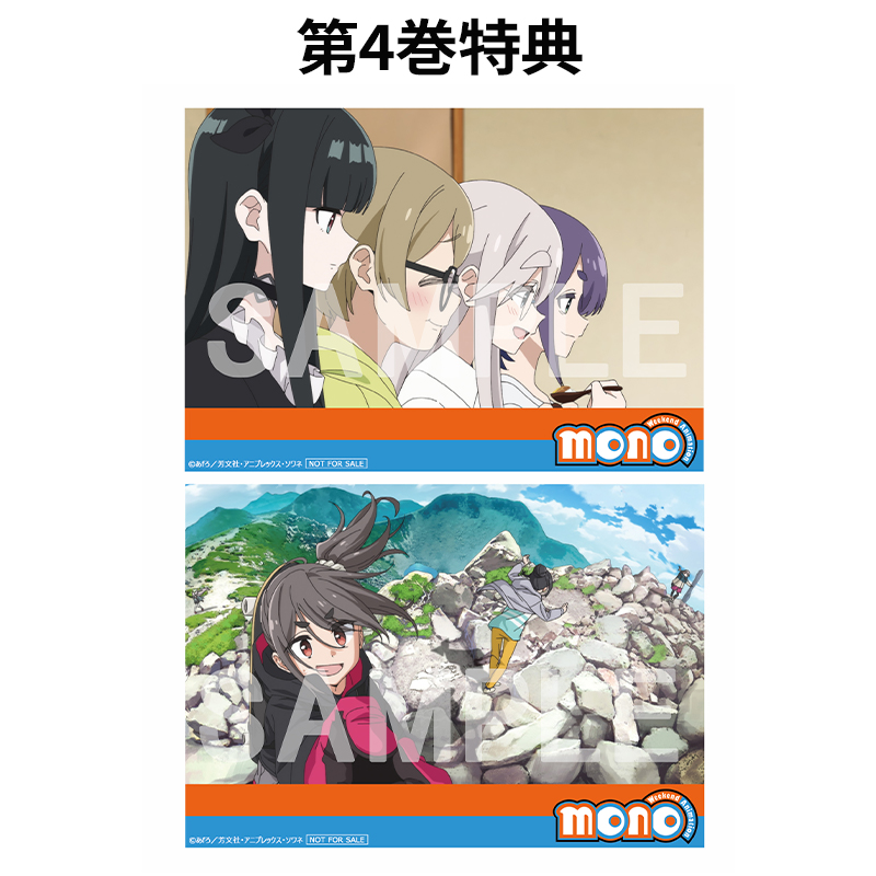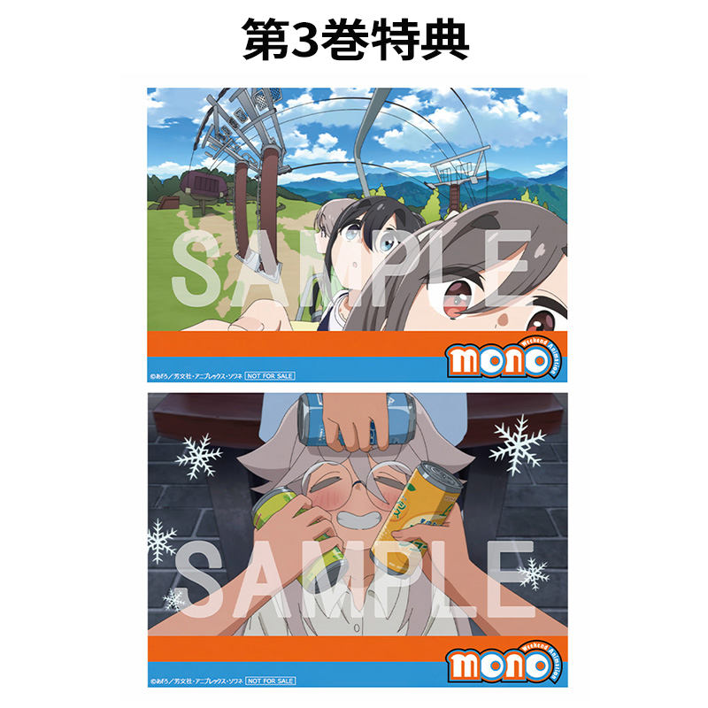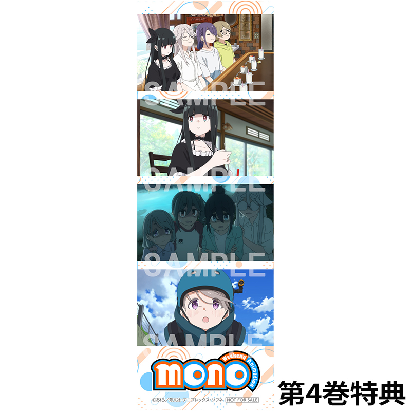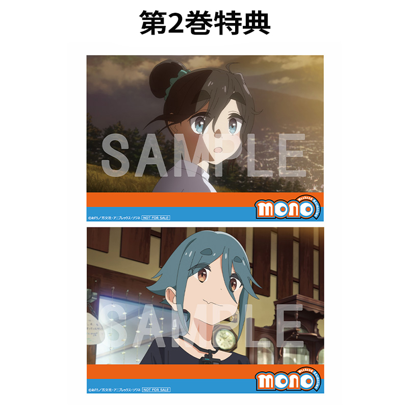対象店舗にて、TVアニメ「mono」Blu-ray/DVD第1巻~第6巻をお買い求めいただいたお客様に、先着で差し上げます。