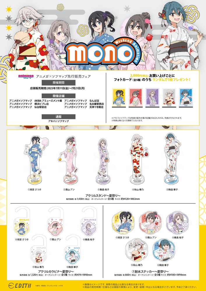 本日7月11日(金)より、TVアニメ「mono」 アニメガ×ソフマップ先行販売フェアがスタート!