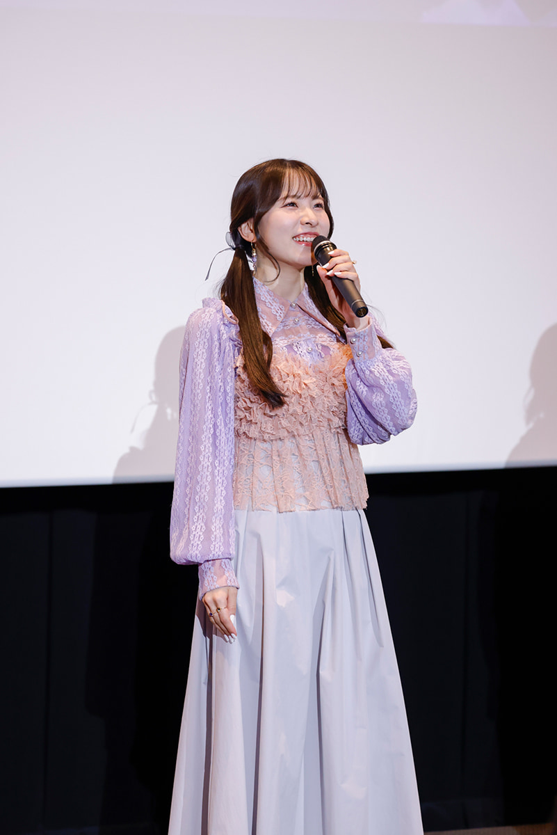 役柄について「アンちゃんはさっちゃんが本当に大好きで、さっちゃんを中心に人生が回っているくらい、思い立ったらすぐ行動の子。ただ意外と周りが見えているところも」と鋭く人物像を捉えつつ、「私もひねり揚げが食べたくなりました!(笑)」とアンを彷彿とさせるお茶目な発言で、会場を笑わせます。